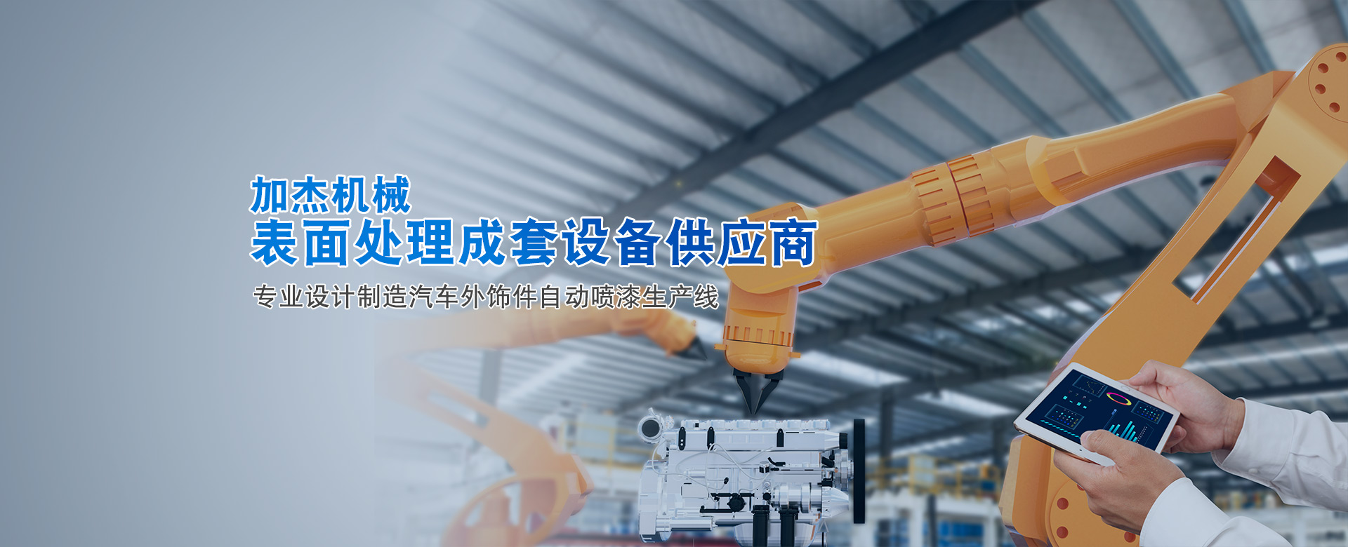 加杰智能裝備(廣東)有限公司是廣州市加杰機(jī)械設(shè)備有限公司的全資子公司,加杰成立于2007年。是一家專(zhuān)業(yè)于表面處理行業(yè)智能化涂裝設(shè)備的研發(fā)、設(shè)計(jì)、制造、安裝與售后為一體的綜合型企業(yè),專(zhuān)業(yè)于塑膠、金屬部件的噴漆、電泳、噴粉等成套自動(dòng)涂裝線(xiàn)交鑰匙工程。 公司在廣州花都和廣清產(chǎn)業(yè)園均有自建研發(fā)及生產(chǎn)基地,占地面積六萬(wàn)余㎡,旗下有加杰智能、川捷智能、漢潔科技、泰國(guó)加杰四家子公司。公司同華南理工、廣工、北理工等知名大學(xué)院校展開(kāi)深度合作,并積極展開(kāi)自主創(chuàng)新和...